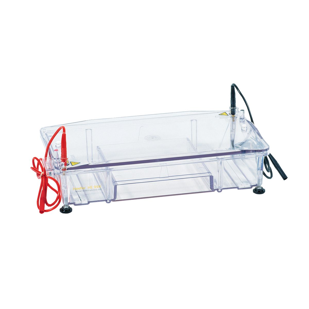产品详情 HE99X 大型水平电泳仪 适用于不同长度及梳子尺寸的凝胶,以便获得DNA片段分离的最佳分辨率 HE99X大型水平电泳仪对于分离100bp至20kbp的核酸片段有非常好的分辨率,本设备配套三个不同长度的托盘。 特征及优势: • 自主定位指南 – 保证了托盘位置一致 • 凝胶锚脚 - 防止凝胶在运行过程中浮动或滑动 • 多种梳子尺寸 - 可根据实验室要求调整样品通量 • 可调梳齿高度 – 自主调控梳孔深度 • 三种凝胶托盘尺寸 - 可以同时运行15 x 20,15 x 15或15 x10 cm的凝胶