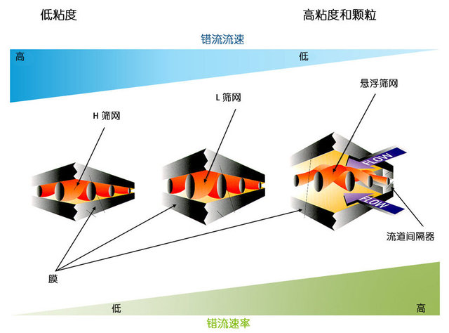 所有TangenX™ PRO膜包均提供悬浮筛网,或称S流道,其使用流道间隔器,由悬浮于膜表面的筛网组成。该类型的流道可在膜表面形成最低量的湍流,而使污染最小化。它同样需要最高的泵速,且不能匹配筛网膜包的错流流速。但是,其可使颗粒通过,如使细胞或细胞碎片通过流道,而不形成堵塞。该类型的流道最适合未澄清的进样料液或者极高粘度的料液。 |