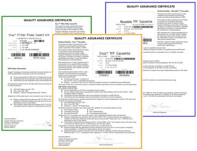 TangenX™膜包以按cGMP原则、经全面验证且文件记录的生产工艺生产。每块膜包提供质保证书。