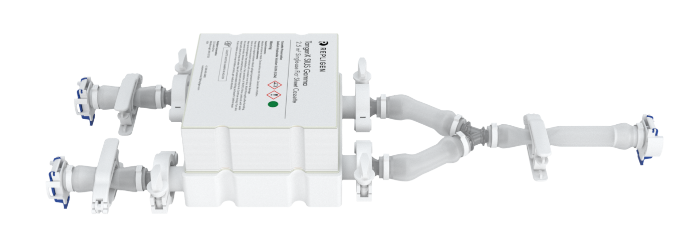 TangenX™ SIUS™ Gamma以完全预组装的封闭套件形式供货,整合包括膜包、导流板、卡箍、管路和不分公母头的AseptiQuik®接头。只需简单地用夹具夹持,连接到您的流路,即可运行工艺。