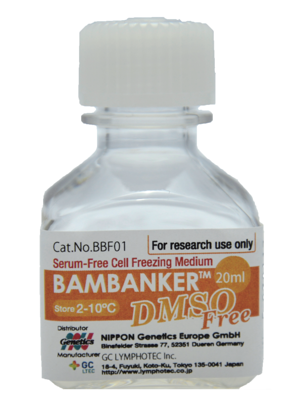 产品详情 ◎ 细胞复苏效率高 Bambanker™是一种无血清冻存培养基,在几乎所有的细胞中都表现出较高的存活率。 ◎ 无需程序降温 Bambanker™的特性决定了它无需程序降温即可完成细胞冻存。 ◎ 无需液氮 Bambanker™含有独特的化学成分,可以直接在-80℃下冻存细胞,且不造成细胞死亡和分化。 ◎ 即用型 Bambanker™冻存培养基是即用型的。使用前无需任何准备,拧开瓶盖即可开始冻存。 产品介绍 Bambanker™一种即用型、无血清的冻存培养基,可直接在-80 °C(或液氮中)冻存细胞,无需昂贵的生冷冰箱或耗时且复杂的程序降温。绝大多数细胞冻存复苏后的存活率超过50%,其中许多细胞超过90%。杂交瘤细胞在长期储存后可达到100%的存活率。