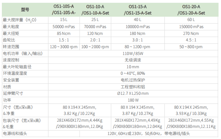 产品详情 产品特点 ✓ 强大温和,支持各种粘度 带式齿轮系统,配备强大的电机,实现温和而有力的操作。3种齿轮传动比覆盖了广泛的应用样品范围。 ✓ 高耐受性 镀铬“防锈卡盘”。 ✓ 高安全性 过热、过载、过电流保护,确保产品和样品的安全。 ✓ 提供伸缩支架 伸缩支架是套装型号的标准配置,便于使用和精确设置。 ✓ 高稳定性 叶轮防抖功能。 ✓ 高清晰LCD显示屏 配备操作直观性高、易于阅读的背光LCD显示器。 ✓ 触摸按钮 卓越的设计,注重用户的便利性。 规格与订购